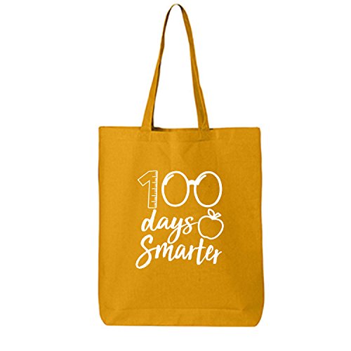Product Description This cotton canvas tote bag features "100 Days Smarter" on the front. 15" Wide x 16" High x 3" Deep with 20" handles. Printed in the USA on an imported bag. 0