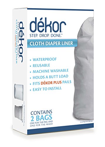 Just because you're eco-friendly and have made the decision to cloth diaper, doesn't mean you have to give up the convenience of a Hands-Free disposal system. After a diaper change, you are likely to have baby in one arm and the soiled diaper in the other hand. No one has a third hand to operate the diaper pail. Dekor Cloth Diaper Liners are designed to use with either Dekor Plus or Dekor Classic Diaper Pails, so that parents who diaper with cloth can also enjoy the ease and convenience of Dekor's Totally Hands-Free System. Just STEP on our foot pedal AND DROP the soiled diaper into the pail. It doesn't get any easier! The Cloth Liner securely folds over your pail's reusable cartridge, in place of the disposable refill. A rubber gasket on the lid tightly seals odors inside the pail. The PVC-free waterproof coating on the liner prevents leaking and wicking from wet diapers. The new and improved drawstring closure is easier than ever to use and makes transporting your diapers to the laundry room a cinch. Just like your cloth diapers, Dekor Cloth Diaper Liners can be reused over and over again. Simply wash the liner with the diapers. Each box comes with 2 cloth liners, one for the pail while the other is in the wash. It's quick and easy to switch to a new bag when the pail needs to be emptied. Neutral gray color is designed to match any Dekor Classic or Plus Diaper Pail.Feature