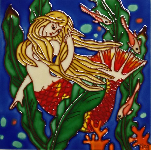 Continental Art Center BD-0601 8 by 8-Inch Orange Tail Mermaid Ceramic Art Tile