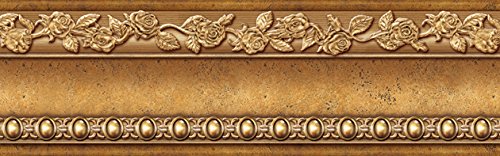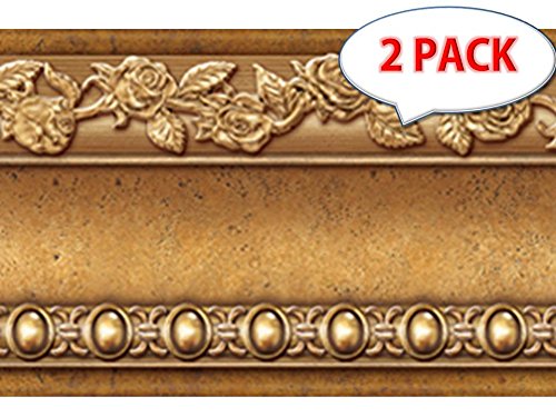 [Pack of 2] Flower Molding Peel and Stick Wall Border Easy to Apply (Gold Brown)
