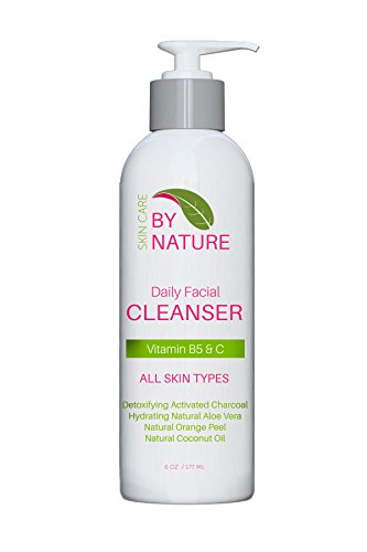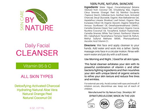 By Nature Organic Facial Cleanser - Activated Charcoal Natural Face Wash - Anti-Aging Face Wash For All Skin Types with Vitamin C, Green Tea, Aloe Vera and Vitamin B5 - 6OZ