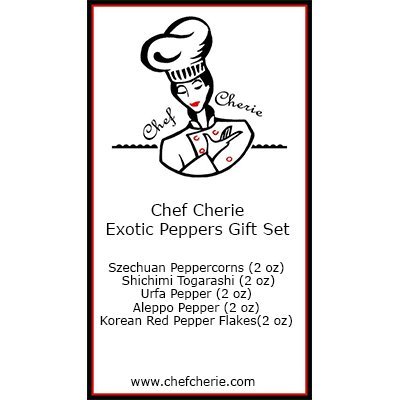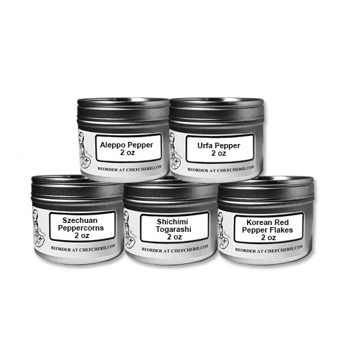 -. Feature : All our spices are highest quality available, we add no fillers / Set contains: Szechuan Peppercorns, Korean Red Pepper Flakes, Shichimi Togarashi, Urfa and Aleppo. / These Peppers are are to find and a great size to experimental chefs / These high quality exotic peppers can be used for many different cuisines / Comes in convenient 2 oz. tins for easy use and storage.