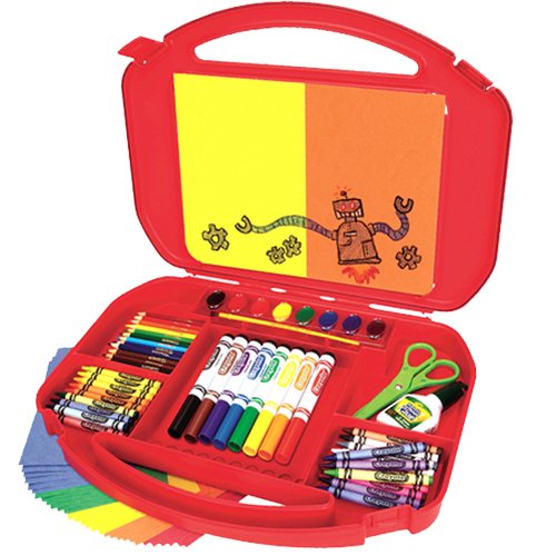- Includes 8 Markers, 24 Crayons, 12 Short Colored Pencils, 8 Washable Watercolors, Paint Brush, Safety Scissors, Washable Glue and 30 Colored Paper SheetsEasy storage & portability!Create art anywhere!