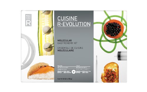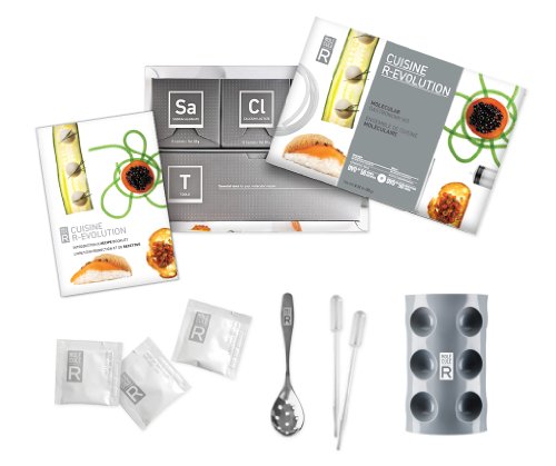 - Feature : Content: - 4 food additives (20 sachets) - 1 silicon mold - 3 pipettes / - 1 slotted spoon - 1 measuring spoon - 1 food grade syringe - 2 silicone tubes - 1 dvd of 50 recipes / List of the additives included: 5 sachets / net 10g - agar agar 5 sachets / net 25g - calcium lactate / 5 sachets / net 10g - sodium alginate 5 sachets / net 10g - soy lecithin / Go on... Play with your food!
