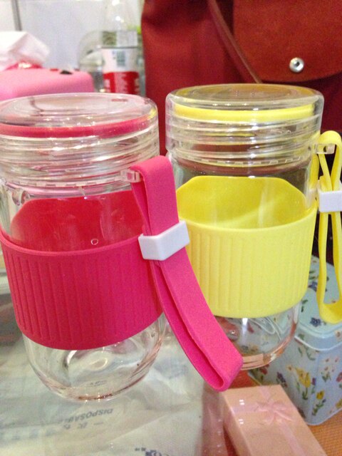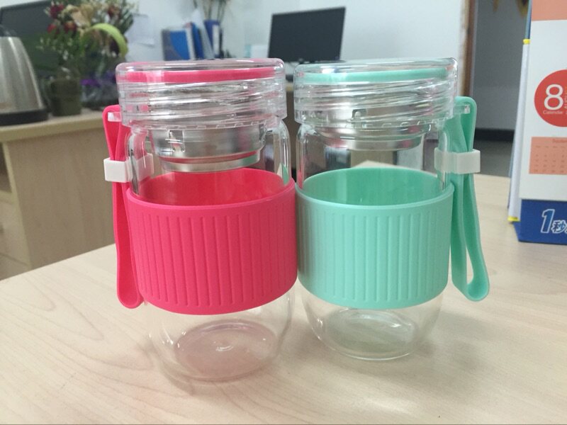 耐高温便携儿童水杯玻璃杯学生杯子创意玻璃杯子随手杯带茶隔茶杯