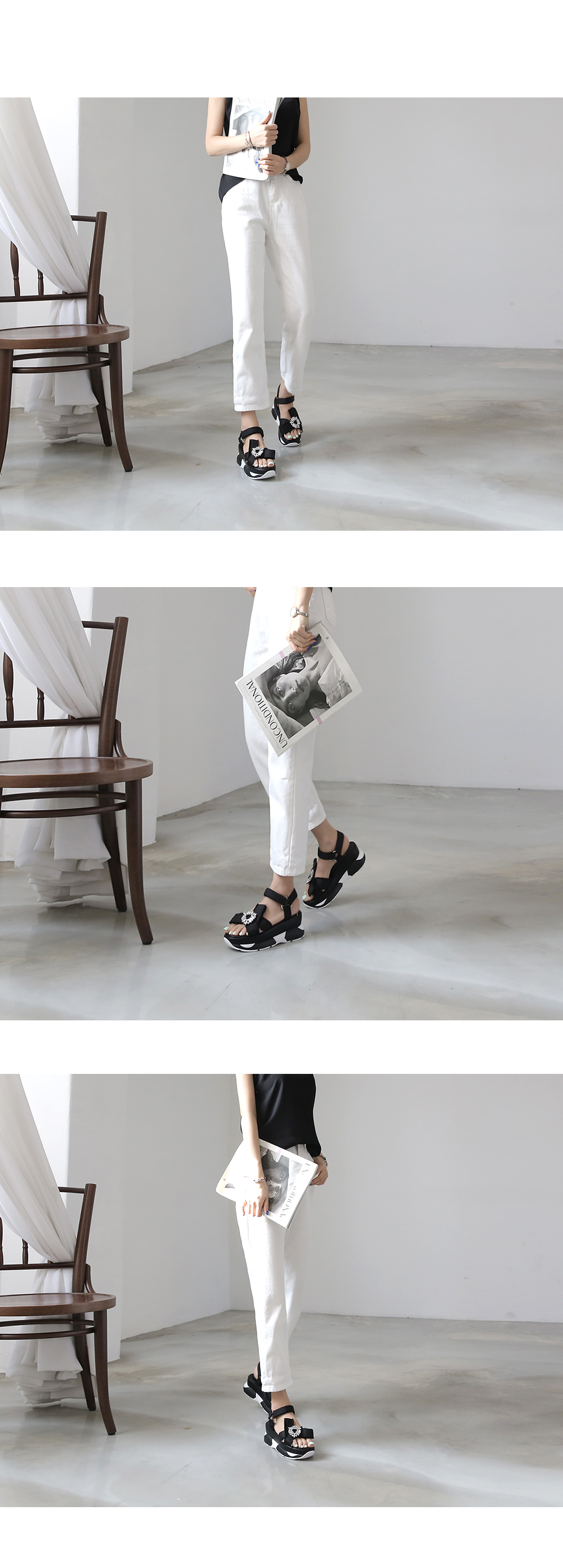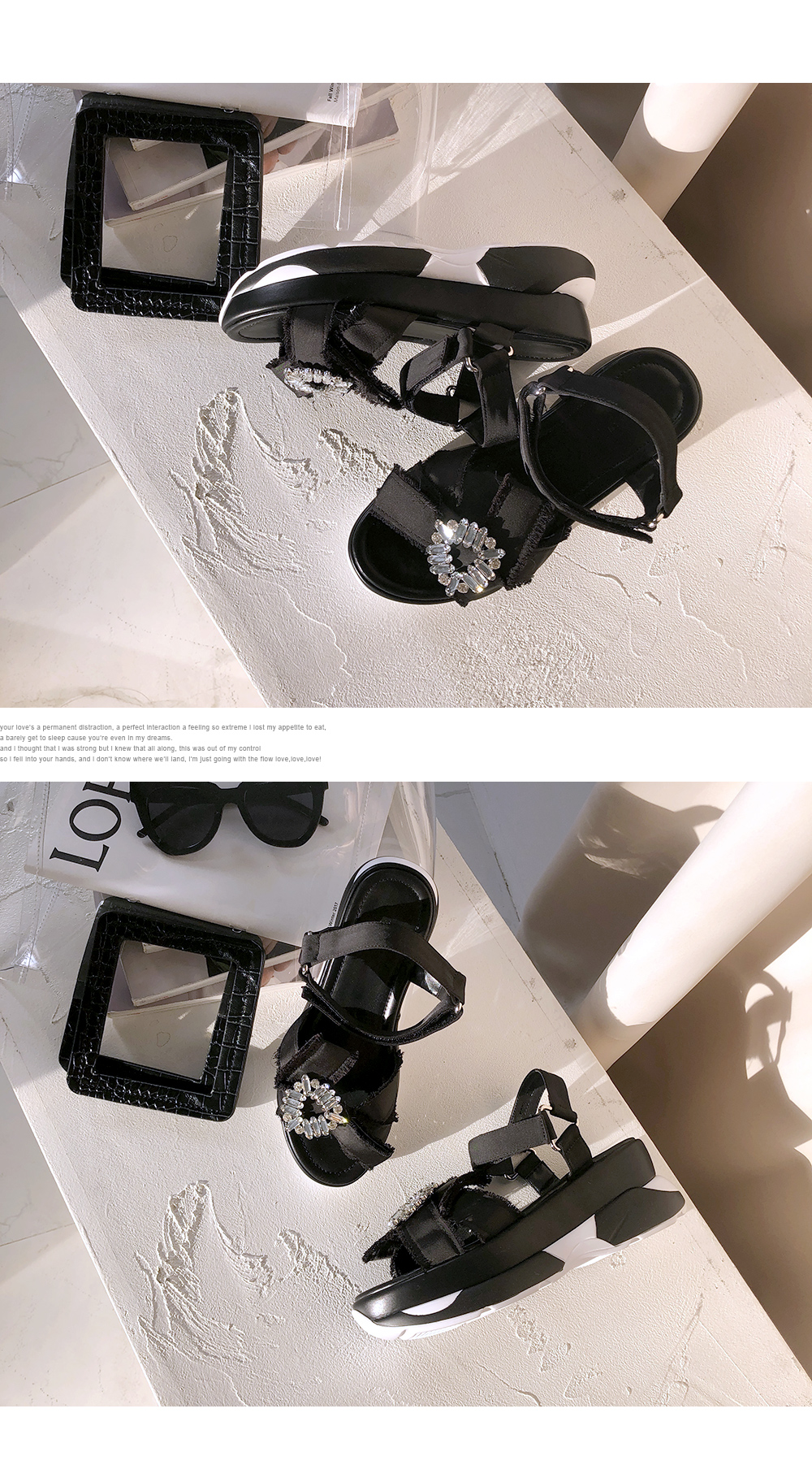 DETAILS - 소재 : 새틴 큐빅 - 컬러 : black - 피팅감 : 정사이즈 / 무게 : 보통인편 - 착화감 : 편해서 데일리 슈즈로 좋아요 - 모델피팅 : 230