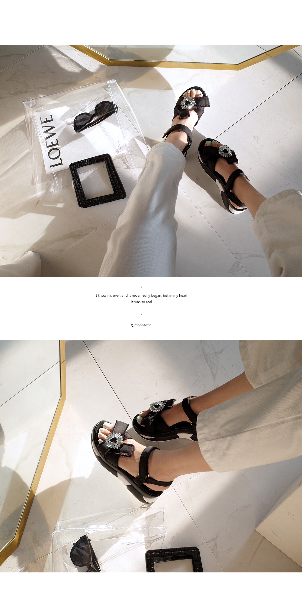 굽 또한 이중굽으로 더해져있으며 스트랩으로 간단한 오픈클로징이 가능합니다.