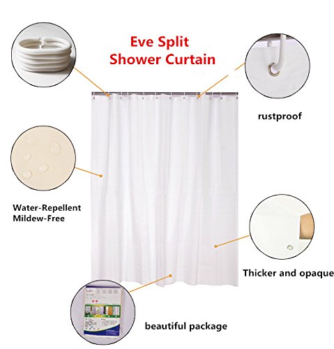 Eve Split Water-Repellent Mildew-Free Resistant Anti-Bacterial PEVA Solid color Shower Curtain for bathroom, 72-Inch by 72-Inch-white