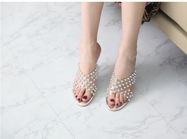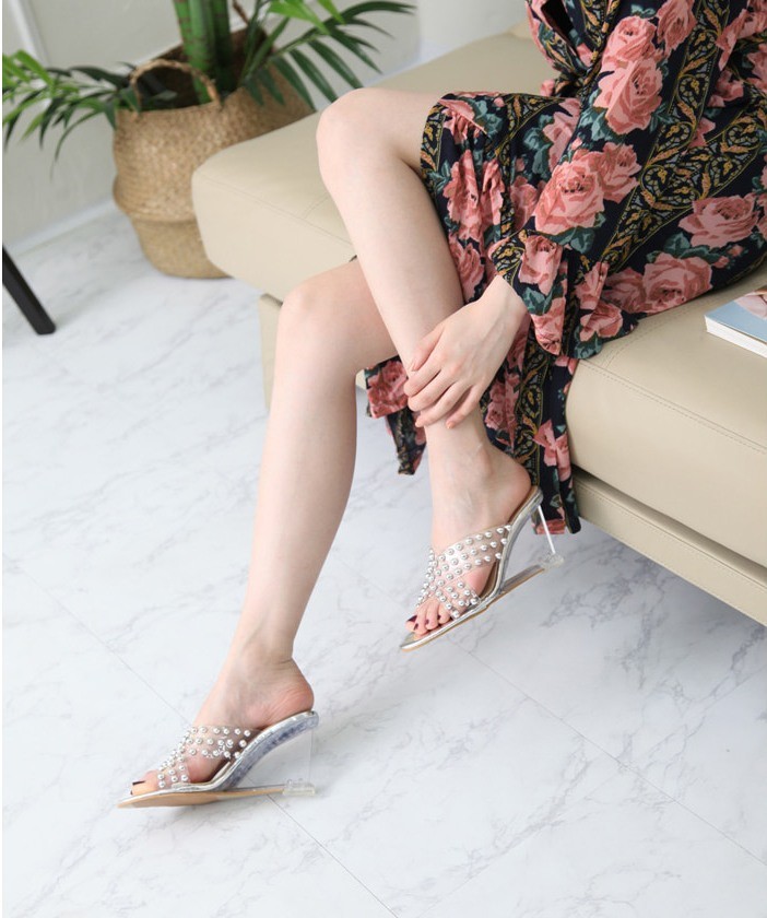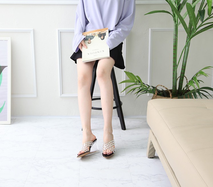商品名:サンダル レディース ミュール クリアストラップ パールビジュー 2018 春 ファッション 靴 婦人靴