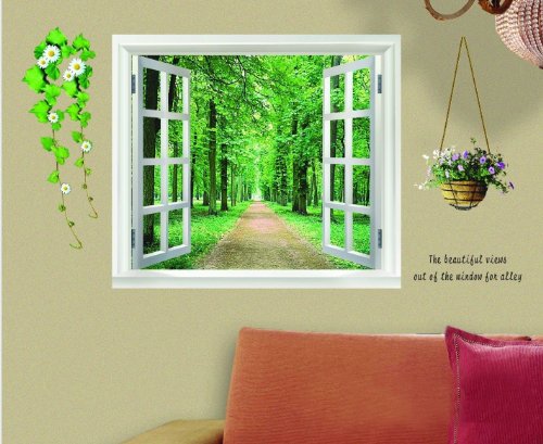 -. Title : SODIAL(R) Huge Window 3D Green View Flowers Plant Wall Stickers Art Mural Decal Wallpaper