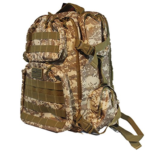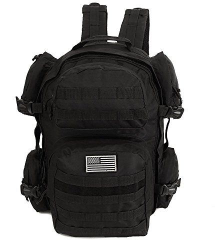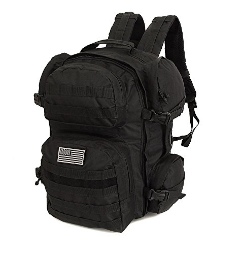 -. Binding : Misc. -. Brand : NPUSA -. Feature : • Material: 600D High density polyester for daily red use. Removable USA Flag velcro patch / • Molle strap system: allows for attachment of external gear; D rings on shoulder straps; Side load compression straps to keep load tight / • Hydration Ready: water bladder pocket inside main compartment with hose/tube pass through hole at the top / • Excellent storage: 4 zippered side gusset pockets, 2 front zippered pockets, organizer, 1 main compartment / • Dimensions: 18.5"L x 12"W x 8.5"D; Volume: 2000 cu. in.; Expandable main compartment up to 2" extra storage space via perimeter zipper -. IsAutographed : 0 -. IsMemorabilia : 0 -. Label : NPUSA -. Manufacturer : NPUSA -. PackageQuantity : 1 -. ProductGroup : Sports -. ProductTypeName : SPORTING_GOODS -. Publisher : NPUSA -. Studio : NPUSA -. Title : NPUSA Men's Large Expandable Tactical Molle Hydration ReadyBackpack Daypack Bag