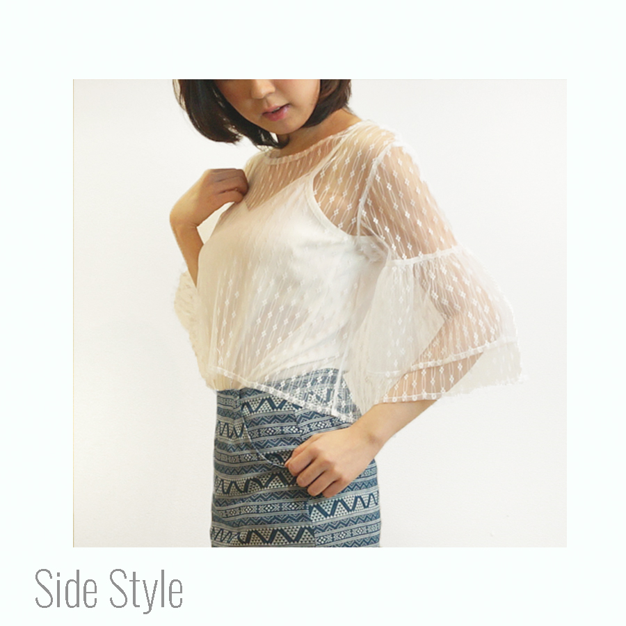 デートにもオケージョンにも使えるレディなレースブラウスです。