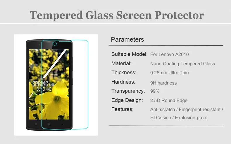 For Lenovo A2010 Screen Protector Original Anti-shock 9H Tempered Glass Safety Protective Film On A 2010 A2580 A2860