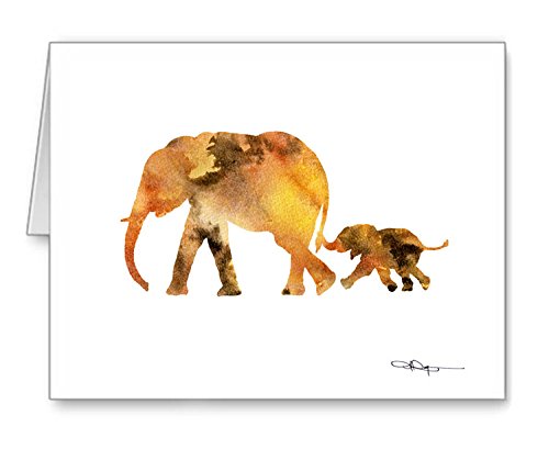 -. Feature : "Elephant And Baby" artwork by watercolor artist DJ Rogers. / Note card size is 4.25 x 5.5 inches / Matching white envelopes included. / Note cards are blank inside for your personal message. / Suitable for framing.