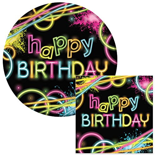 Glow Party Happy Birthday Lunch Napkins & Plates Party Kit for 8