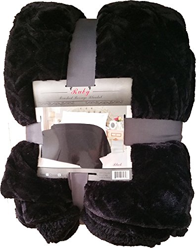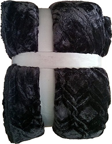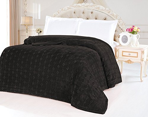 Fancy Collection Queen/king Size Embossed Blanket Sumptuously Soft Plush Solid Black with Sherpa Revirsable Winter Blankets Bedspread Super Soft New