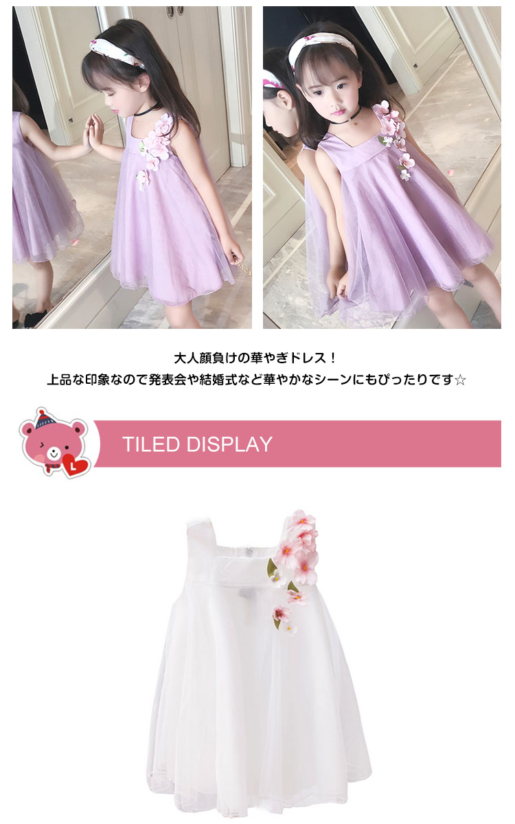 | 薄いソフトチュールを重ねたふんわり愛らしい印象の子供ドレス。ふんわり広がるスカートがやさしい雰囲気でキュート★大人顔負けの華やぎドレス!上品な印象なので発表会や結婚式など華やかなシーンにもぴったりです☆ | |