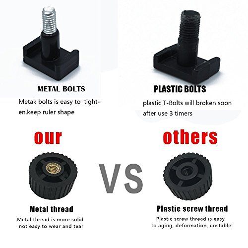 - easy tighten Measuring angles : plastic rails are flexible and sturdy,The texture on the knobs makes them easy to grasp firmly.They hold their configurations (shapes) securely, without the knobs having to be cranked down hard(we are best in all brand about making it hold its shape without me having to tighten the knobs so firmly.
