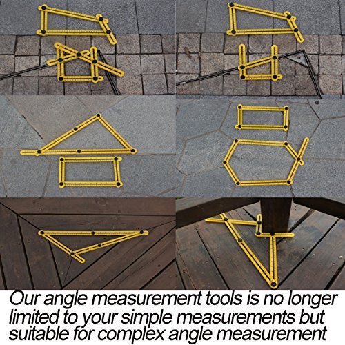 - Real multi-angle measurement tools :bigger measuring range .Our angle measurement tools is no longer limited to your simple measurements but suitable for complex angle measurement. Don't forget his detachable design, disconnect any angle screws, it can measure 2 to 7 angle one time after deploy and use it to mark the floor tiles, brick, wood, laminate, metal and more! Of course perfect fix shape requires good quality metal knobs and bolts