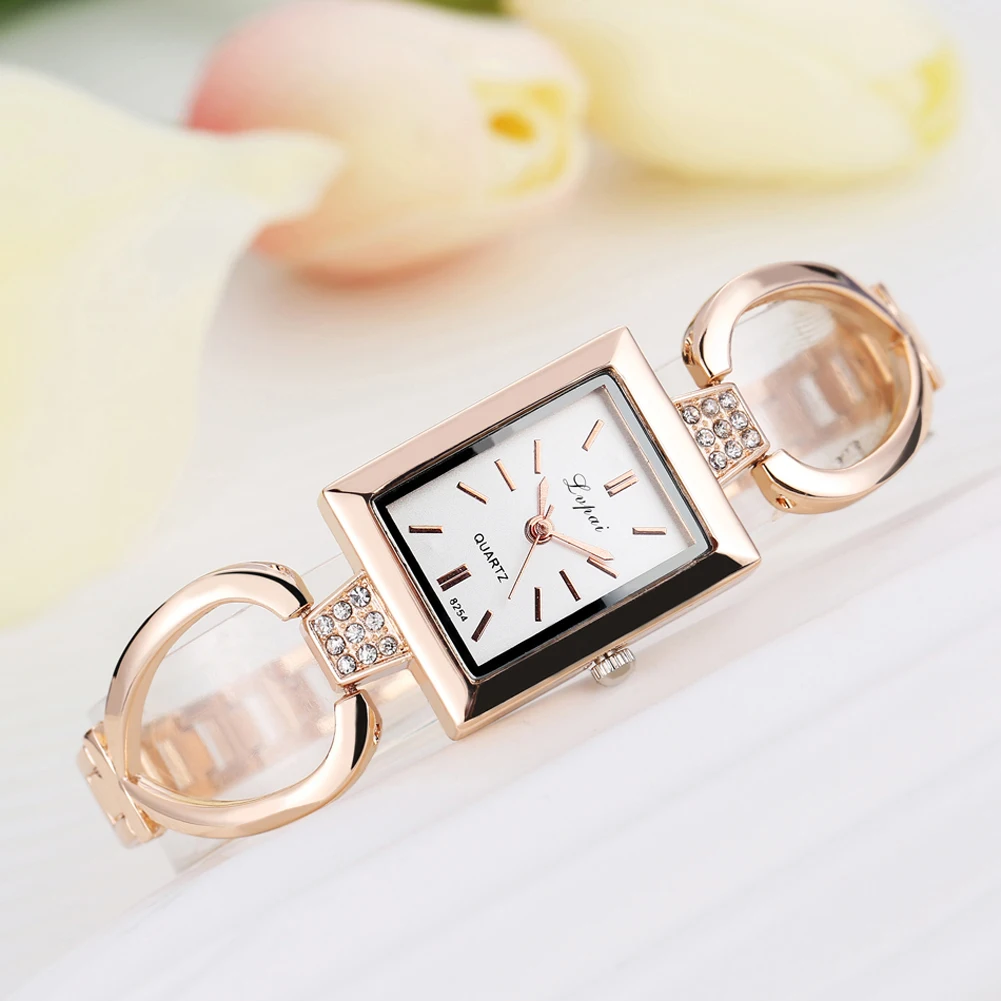 | [해외] 2017 Lvpai 패션 석영 여성 시계 모조 다이아몬드 손목 시계 레이디 골드 Squre 팔찌 시계 얀의 saat relojes mujer |