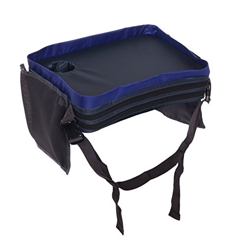 Play 'N Tray | Kids Car Backseat Travel Tray | Lap Tray w/ Cup Holder | Mesh Pockets | Children's Snack Activity Desk | (Blue)
