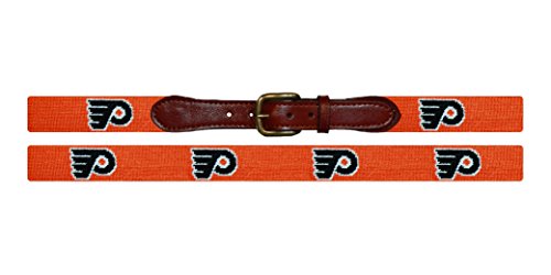 Binding : Apparel Product Description Celebrate your favorite National Hockey League team with an original Smathers Branson needlepoint belt! These classy belts are hand-stitched and made with full grain, chestnut colored leather. Perfect in the office or any casual occasion, these needlepoint belts will set you apart from the crowd. Important Sizing Information: Select belt 2 inches larger than your pants waist size. For example, someone whose pants have a 36 inch waist wears a 38 inch belt. When the waist is an odd size, increase the belt size by 3 inches (i.e. a size 33 wears a size 36 belt). Founded in 2004 by two college roommates, Smathers Branson is a leading designer of fine, hand-stitched needlepoint clothing and accessories. 0