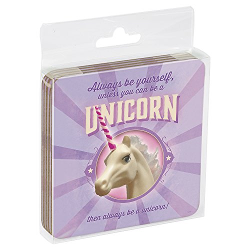 Tree-Free Greetings Set Of 4 Cork-Backed Coasters, 3.75 x 3.75 Inches, Always Be Yourself Themed Unicorn Art (96163)
