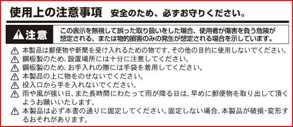 | 仕様 | 壁掛けタイプ 投入口サイズ:約W24×H9cm 取出し口サイズ:約W18×H10.5cm 完成品 |