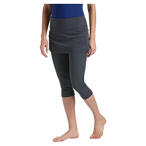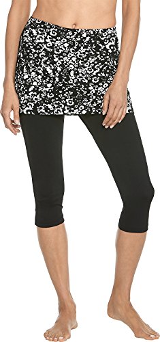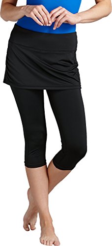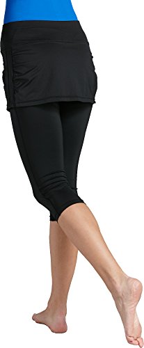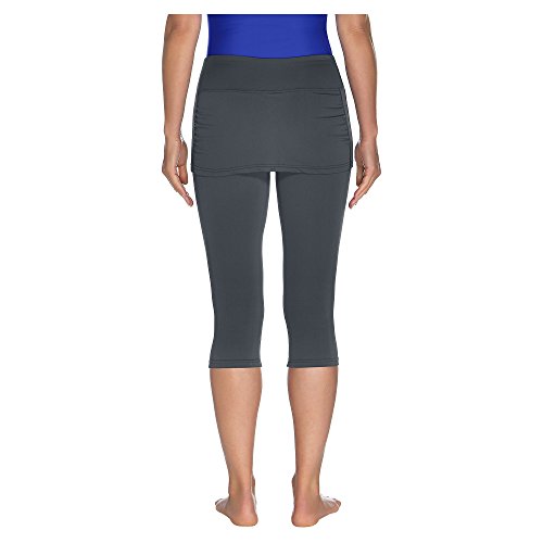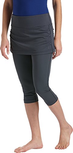 -. Feature : Flattering wide waistband, semi-fitted ruched skirt over fitted caP.R.Is, flat lock seams prevent chaffing / Hidden key pocket; gripper elastic in back holds waistband in place / Mid-rise (2 inches below bellybutton), 18 inch inseam and 11 1/2 inch skirt length / Easy care: machine wash, line dry; Imported; designed and manufactured by Coolibar / Recommended for: swimming, stand-up paddleboarding, waterskiing, fishing and boating, leisure watersports in swimming pools, fresh and saltwater
