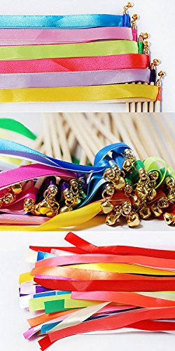 Hangnuo Pack of 30 Ribbon Wands With Bell Favor Streamer Fairy Stick Wish Wands for Wedding Holiday Party Celebration (Mix Color)