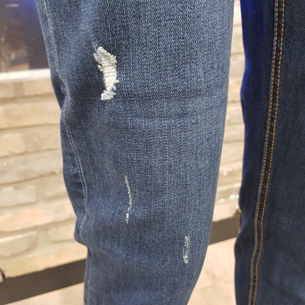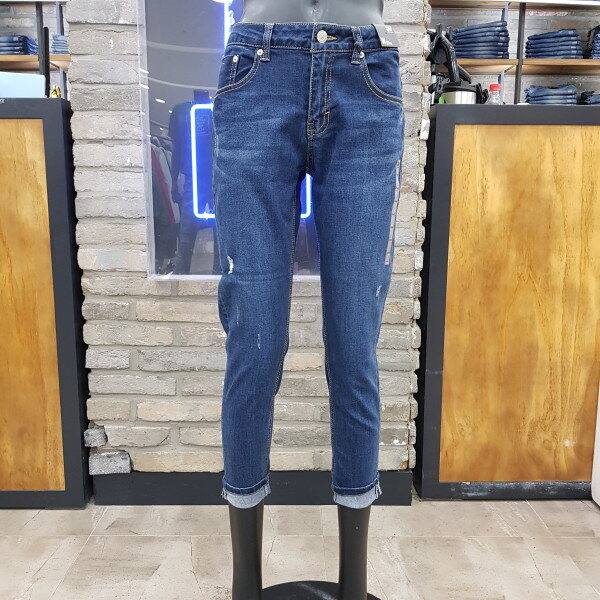 다크 인디고 컬러의 크롭 보이프렌드 핏.캣브러시와 도밍고 워싱으로 심플하고 깔끔한 스타일. 은은하게 브러시작업을 하여 답답해 보이지 않은 다크톤으로 제안함. ( 여성사이즈->64(25),67(26),70(27),73(28),76(29),79(30)입니다.)