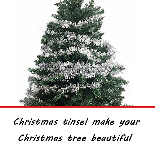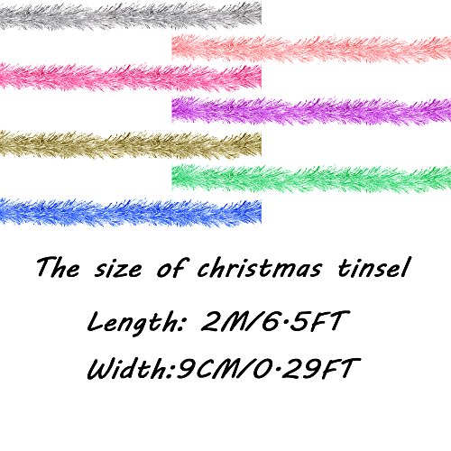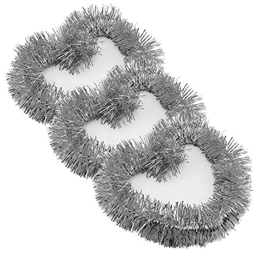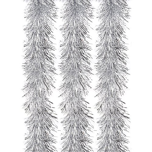 ATOOZ Christmas Tinsel Garland Thick Shiny Lighting Decorations for Christmas Tree Party 3Pcs 6.5 Ft x 4 Inch Wide (Silver)