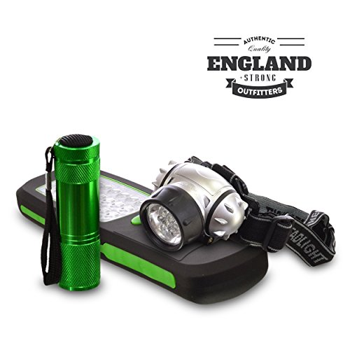 - Title : England+Strong Flashlight LED with Worklight and Headlamp 3 Piece Set in Green
