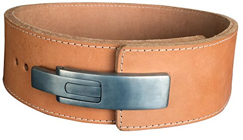 Lever Buckle Weightlifting Belt - 100% Real Genuine Leather Individually Handmade 13MM thick Belt Powerlifting & Bodybuilding 4" Wide (Natural Leather Color, Medium 31"- 38")