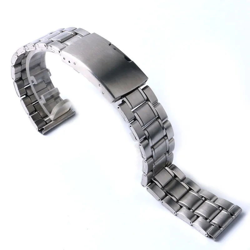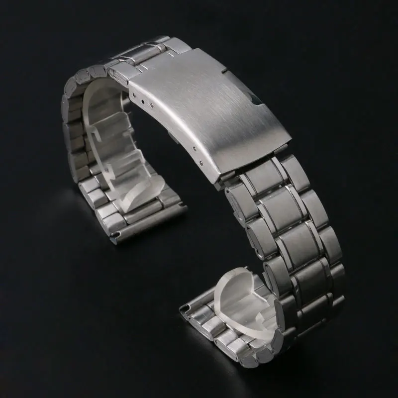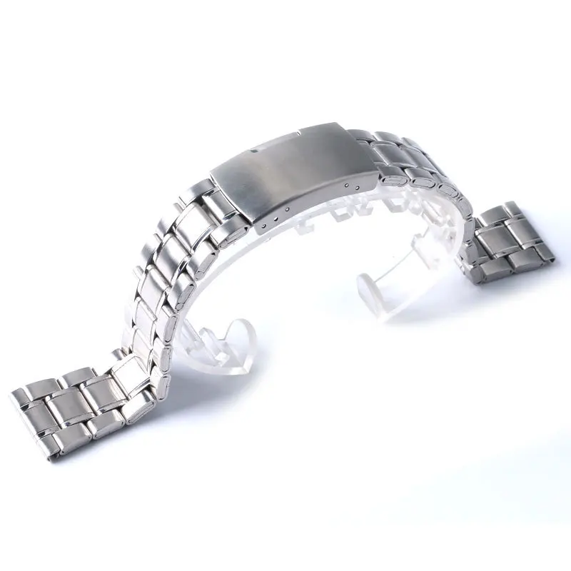 20 미리메터 실버 밴드 폭 스테인레스 스틸 손목 시계 밴드 일방적 프레스 접이식 버클