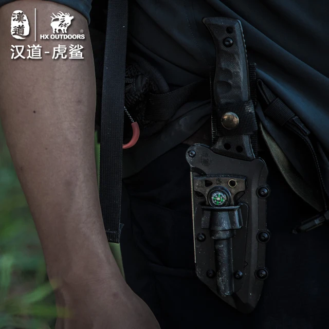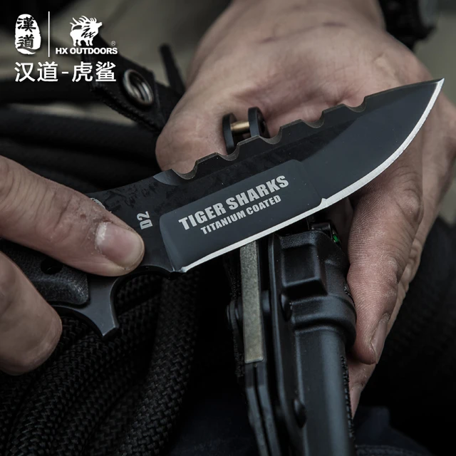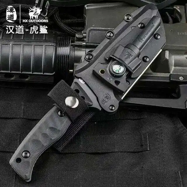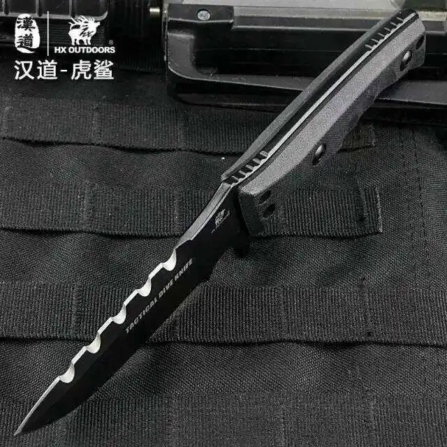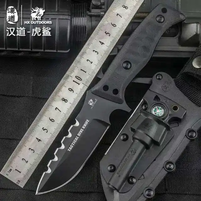 [해외] HX 야외 타이거 상어 전술 다이빙 칼 D2 블레이드 고정 캠핑 칼집 G10 핸들 사냥 방어 멀티 나이프