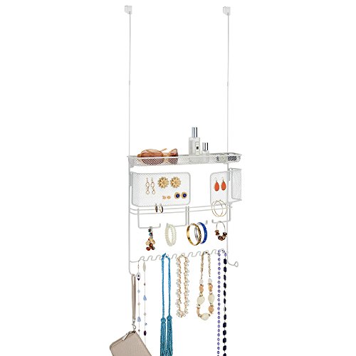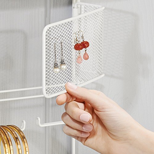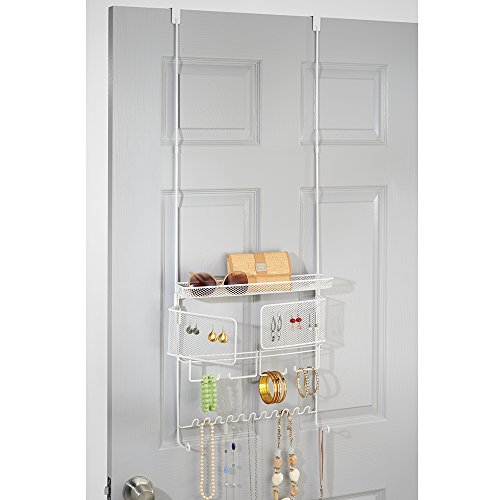InterDesign Classico Hanging Fashion Jewelry Organizer for Rings, Earrings, Bracelets, Necklaces - Over Door, White