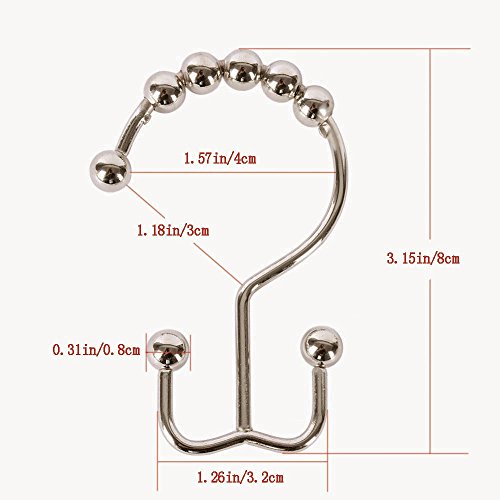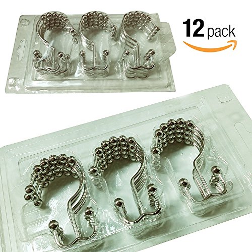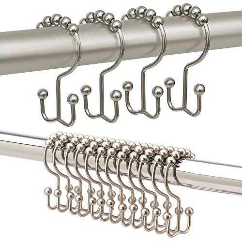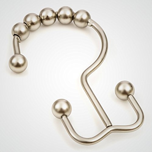 Bathroom Shower Curtain Rings Hooks With Double Glide And Round Rollers, 12 of Pack (Brushed Nickel-m)