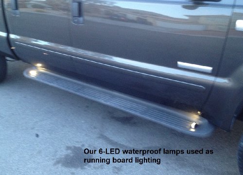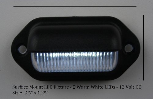 This compact courtesy LED lighting fixture is ideal as a compact lighting source inside boats, aircraft, automotive, RV and truck applications. The surface mount configuration directs lighting downward and is ideal for lighting vehicle interiors including footwells, walkways, map tables and other areas. Packaged individually - one lamp per order (each lamp has 6 internal LEDs). This fully waterproof lamp is also DOT approved as a license plate lamp on vehicles and trailers. For interior applications, the six (6) bright warm white LEDs are dimmable (see our other items for 12 Volt DC PWM dimmers) and have extremely low power consumption (0.1mA). Output: about 35 lumen. See our other listings for similar fixtures in other LED colors (Blue, Red, Green) as well as other voltages (24VDC). See all our low voltage LED lighting at our Amazon store.