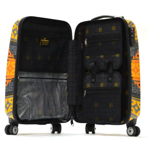-. Binding : Apparel -. Brand : Olympia -. Department : lage -. Feature : Top quality aluminum handle system. / Built-in TSA lock / Fully padded and elegantly designed interior lining with zippered internal divider with web and wet pouch. / Padded compression divider with zipper pockets and includes a lage cover and removable shoe pocket. / Size-21x14x9 -. Label : Olympia Lage -. Manufacturer : Olympia Lage -. PackageQuantity : 1 -. ProductGroup : Apparel -. ProductTypeName : LAGE -. Publisher : Olympia Lage -. Studio : Olympia Lage -. Title : Olympia Lage New Age Art Series 21 Inch Carry-On