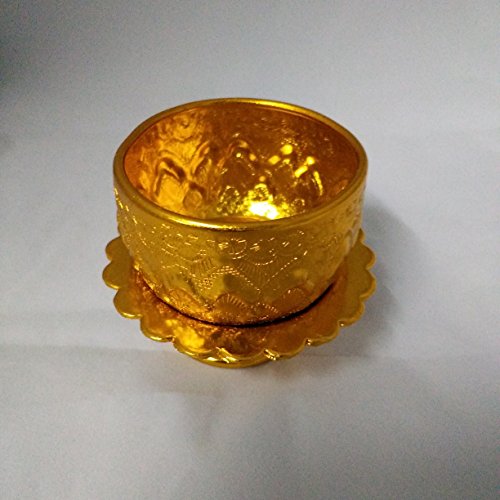SMALL GOLD COLOR BOWL &TRAY WATER FOR DRINKING THAI ANTIQUE COLLECTION