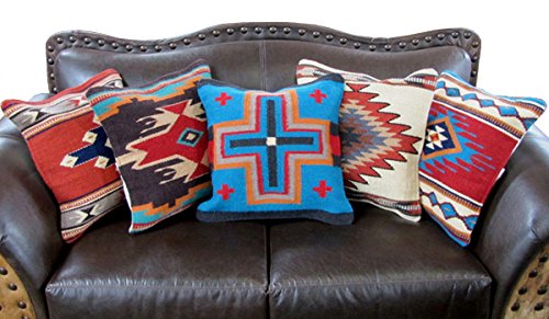 Let these beautiful geometric southwest designs bring a bold, enchanting feel of the rustic southwest to any room. These unique, high quality, hand-woven wool Throw Pillow covers are an amazing artistic expression of Native American, ancient Latin American, and southwest culture. Wool is naturally anti-static, Hypoallergenic, flame resistant, and stain resistant to endure years of regular use while maintaining its vivid color and beautiful look. Constructed with a sturdy canvas back featuring a strong velcro closure. Measures approximately 18 x 18 inches. Insert Pillow is not included. See our other listings for matching table runners, hand bags, tote bags and place mats. See Matching Inserts available at www.amazon.com/dp/B01B25ET5SFeature