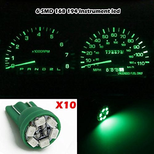 Partsam 10x T10 Wedge Green Speedometer Instrument Gauge Cluster LED Light Bulbs 158 194