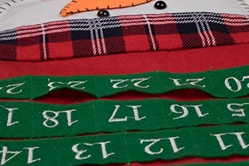 Christmas 24 Day Hanging Cloth Advent Calendar | Red and White Snowman with Tall Hat Christmas Design | Traditional Holiday Christmas Decor Theme | Perfect for Home or Office | Measures 26.5" Tall