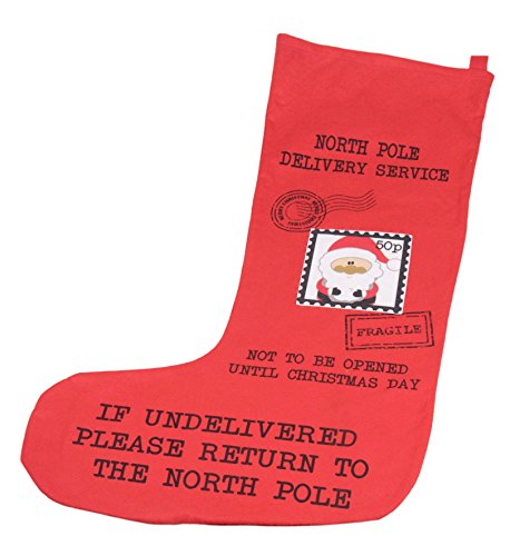 GREAT HOLIDAY DESIGN: This giant Christmas stocking features a classic, traditional red deisgn with pretend postage and mailing text written all throughout as if Santa himself mailed it from the north pole. No matter what your decoration style, this advent calendar is sure to fit in perfectly!