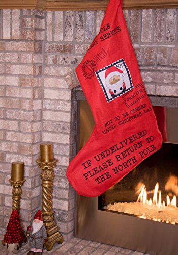 Oversized Christmas Stocking Mailed from Santa Claus by Clever Creations | Red and Black with Postage Stamp Print | Soft Plush Felted Cloth | Festive Holiday Décor | Measures: 37” x 23.5” Wide At Toe