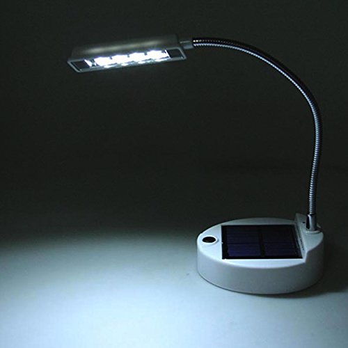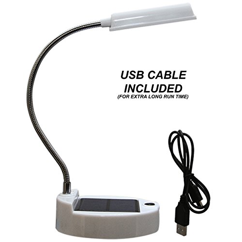 Ultra Bright 4 LED Rechargeable Solar Desk Lamp - Use as A Reading Light, Nightstand, Garage, Outdoors, Camping, RV, Attic Etc. (White)