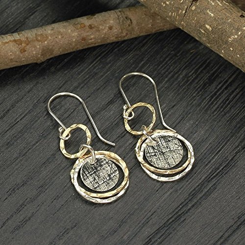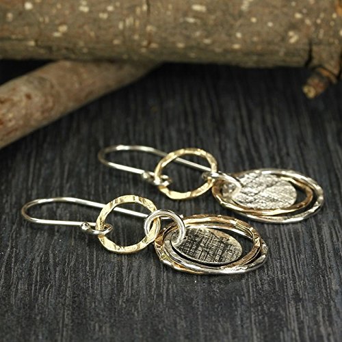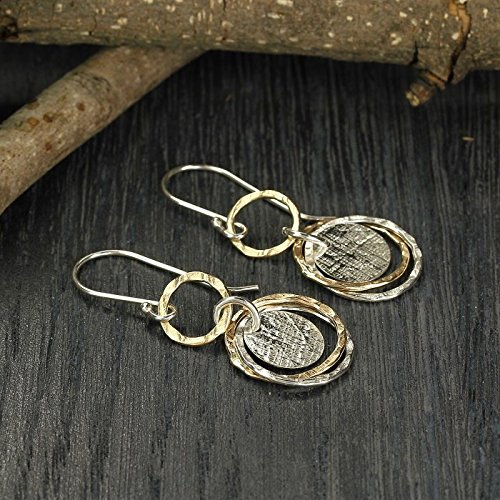 -. Feature : Two Tone Multi Circle Dangle Earrings Made by Hand in our Jewelry Design Studio / 925 Sterling Silver & 14K Gold Filled Earrings / Elegant Every Day Earrings Measuring About 1" in Length / 925 Sterling Silver French wire hooks / Fashionable lightweight earrings
