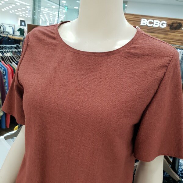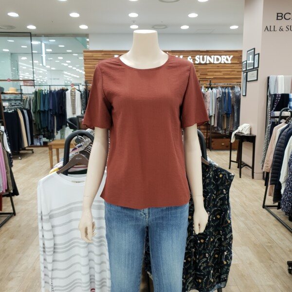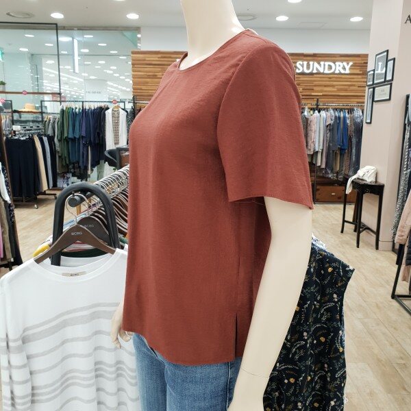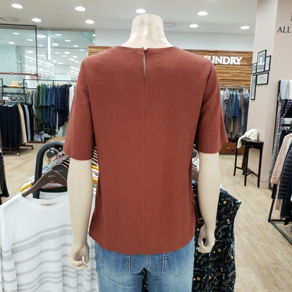 넓은 소매통이 팔뚝살을 커버해주는통기성좋은 티셔츠형 레이온블라우스