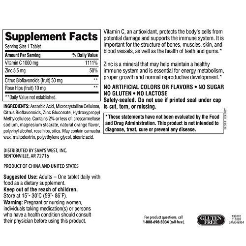 Vitamin C, an antioxidant, protects the body's cells from potential damage and supports the immune system. It is important for the structure of bones, muscles, skin, and blood vessels, as well as the health of teeth and gums. Zinc is a mineral that may help maintain a healthy immune system and is essential for energy metabolism, proper growth and normal reproductive development.Feature